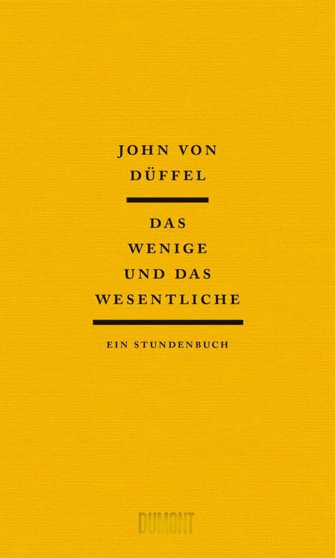 Locker ans katholische, klösterliche Stundengebet angelehnt beginnen von Düffels Überlegung auf S. 7 im ersten Kapitel mit „Einige Gedanken über Askese (vor Sonnenaufgang)“ Darin fragt er „Was brauche ich wirklich … Worauf kommt es an“. Auf den Punkt gebracht stellt der Autor die ethische Grundfrage „Wie lebe ich richtig?“ schon vor der ersten Seite. Diesen Fragen denkt von Düffel in seinem ganzen Buch im Horizont der Askese nach. Er sieht Askese dabei nicht in religiösem Horizont. „Himmel und Hölle sind leer.“ (S. 21) Von Düffels Asket „ist und bleibt ein Asket ohne Gott.“ (S. 31) Er ist auch nicht „gläubig im religiösen Sinn.“ (S. 37) An diesen Stellen werden viele dem Autor nicht folgen wollen.