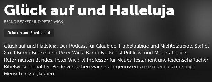Glück auf und Halleluja: Der Podcast für Gläubige, Halbgläubige und Nichtgläubige. Staffel 2 mit Bernd Becker und Peter Wick. Bernd Becker ist Publizist und Moderator des Reformierten Bundes, Peter Wick ist Professor für Neues Testament und leidenschaftlicher Bibelwissenschaftler. Beide versuchen wache Zeitgenossen zu sein und als mündige Menschen zu glauben.