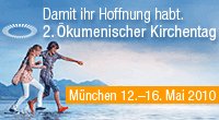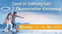 Unter dem Motto „Damit ihr Hoffnung habt„ lädt der 2. Ökumenische Kirchentag (2. ÖKT) im kommenden Jahr nach München ein. Vom 12. bis 16. Mai 2010 wollen Menschen aus Deutschland und der ganzen Welt über ihre Rolle als Christen in der Welt und der Gesellschaft diskutieren, gemeinsam feiern und für ökumenische Gemeinschaft unter allen christlichen Konfessionen eintreten. Weit über 100 000 Dauerteilnehmende werden zu dieser ökumenischen Großveranstaltung erwartet.