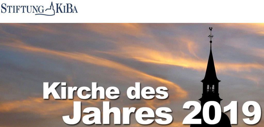 Der beliebte Wettbewerb um den Titel „Kirche des Jahres“ der Stiftung zur Bewahrung kirchlicher Baudenkmäler in Deutschland (Stiftung KiBa) hat begonnen. Die von der Evangelischen Kirche in Deutschland (EKD) gegründete Stiftung würdigt jeden Monat eine geförderte Kirche als „Kirche des Monats“. Ab sofort können Interessierte aus dem Pool für die „Kirche des Jahres 2019“ votieren. Die Frist zur Abstimmung läuft bis zum 26. April 2019.