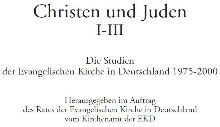 Die Evangelische Kirche in Deutschland (EKD) hat in ihren drei Studien „Christen und Juden“ 1975, 1991 und 2000 einen wichtigen Beitrag zur Klärung zentraler Fragen geleistet. In der 3. Studie, an deren Erarbeitung ich in einer früheren Funktion mitgewirkt habe, wird als Konsens aller Gliedkirchen der EKD festgehalten: