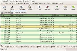 In das zentrale Kontenbuch tragen Sie alle Transaktionen ein. GnuCash erkennt wiederkehrende Posten, die dann automatisch vervollständigt werden. Die Entwicklung Ihrer Finanzen können Sie in den über 30 vorgefertigten Berichten festhalten.