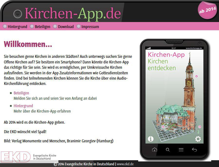 Sie besuchen gerne Kirchen in anderen Städten? Auch unterwegs suchen Sie gerne Offene Kirchen auf? Sie besitzen ein Smartphone? Dann könnte die Kirchen-App das richtige für Sie sein!