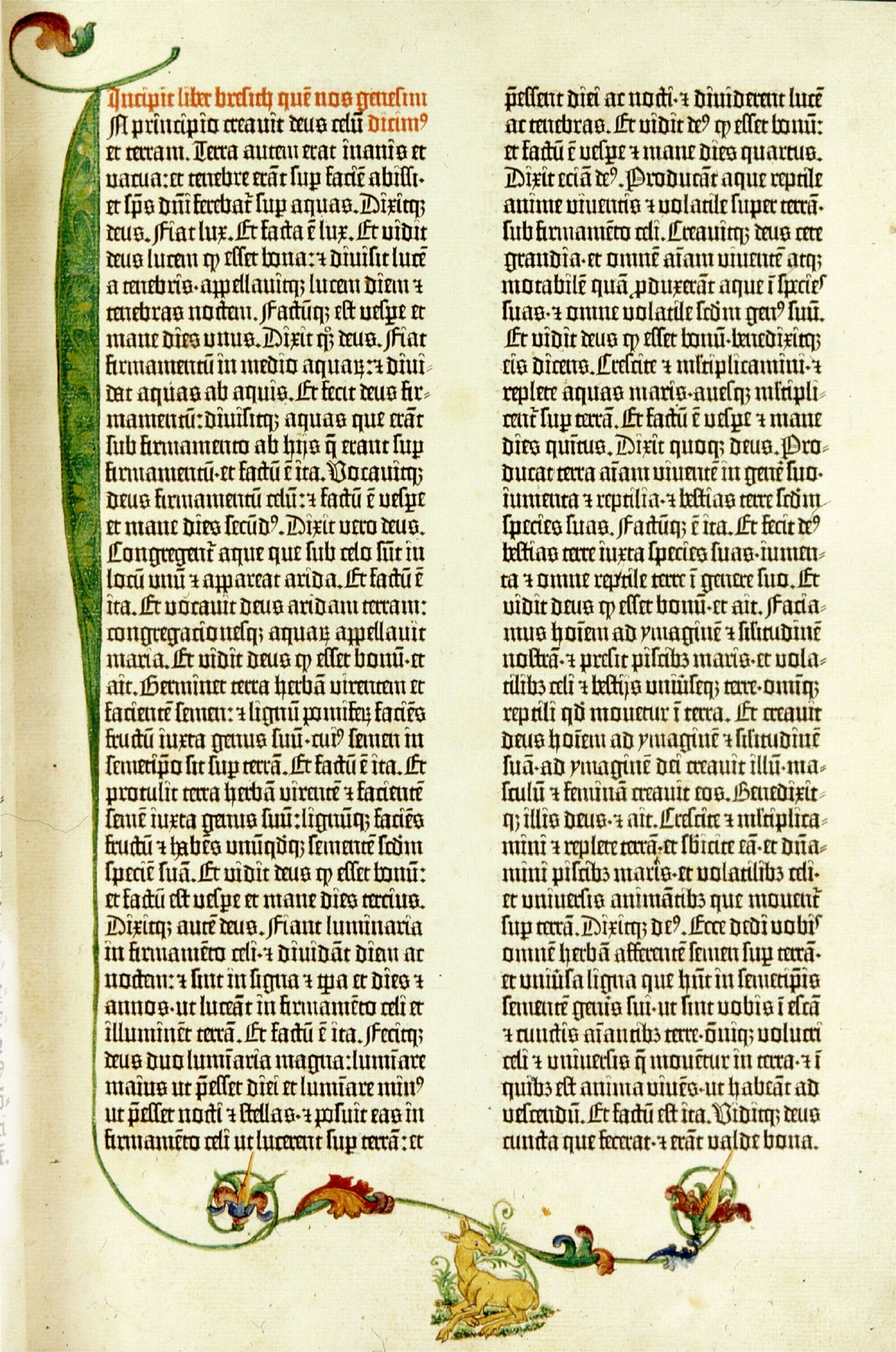 Die 1454 in Mainz gedruckte 42-zeilige Biblia Latina, die sogenannte Gutenbergbibel, ist das erste mit beweglichen Lettern gedruckte Buch des Abendlandes. Die Stuttgarter Gutenbergbibel ist ein bis auf eine Seite vollständig erhaltenes Exemplar. Bei der Anfertigung des Buches wurde versehentlich die Seite mit dem neutestamentlichen Philemonbrief doppelt gedruckt, es entfiel dafür ein Abschnitt aus dem Kolosserbrief.