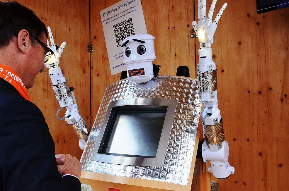 Die Kunstinstallation, die als „Segensroboter“ bekannt wurde, will zum Nachdenken über die Bedeutung geistlicher Handlungen im 21. Jahrhundert anregen. „BlessU-2“ ist am Standort der LichtKirche im Ausstellungsbereich Globalisierung zugleich der Versuch einer religiösen Annäherung an die aktuellen Themen Digitalisierung und künstliche Intelligenz. Das Angebot soll dazu beitragen, dass Menschen ihr theologisches Verständnis von Segen schärfen, die vielschichtige biblische Tradition des Segens wahrnehmen und dem geistlichen Geheimnis des Segens auf die Spur kommen. Dabei wirft das kommunikative Experiment weiterführende Fragen auf: Was geschieht beim Segnen? Welche Voraussetzungen braucht es für einen Segen? Dadurch werden bereits bekannte mediale Themen wie etwa „Wirkt ein Segen, der im Radio oder im Fernsehen gesendet wird?“ auf die neuesten technologischen und gesellschaftlichen Entwicklungen ausgeweitet.