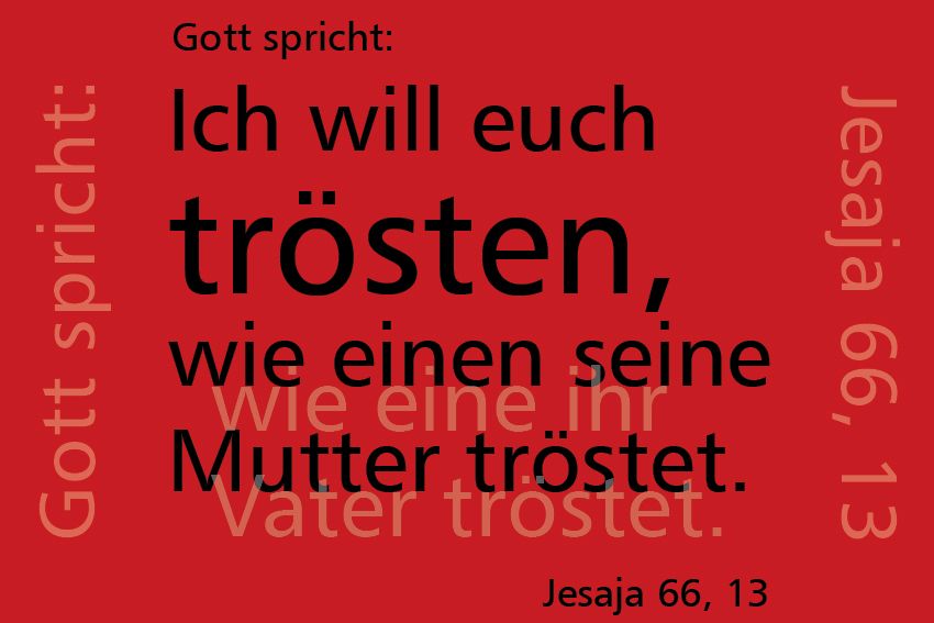Gott spricht: Ich will euch trösten, wie einen seine Mutter tröstet.