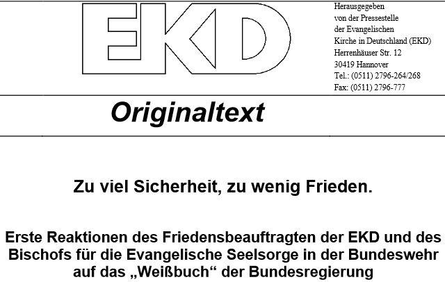 Erste Reaktionen des Friedensbeauftragten der EKD und des Bischofs für die Evangelische Seelsorge in der Bundeswehr auf das „Weißbuch“ der Bundesregierung, Juli 2016