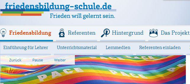 "Frieden will gelernt sein" ist das Motto für Friedensbildung in Schulen. Die Website www.friedensbildung-schule.de stellt dafür vielfältige Unterstützungsangebote kostenfrei zur Verfügung. Interessierte finden dort Informationen und Kontakte zur politischen Bildung junger Menschen.