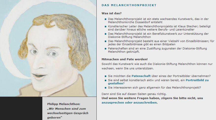 Das Melanchthonprojekt besteht aus einer Vielzahl von Einzelbildnissen; für jedes der Einzelbildnisse gibt es einen Bildpaten. Patenschaften sind an eine Zustiftung zugunsten der Diakonie-Stiftung Melanchthon geknüpft.